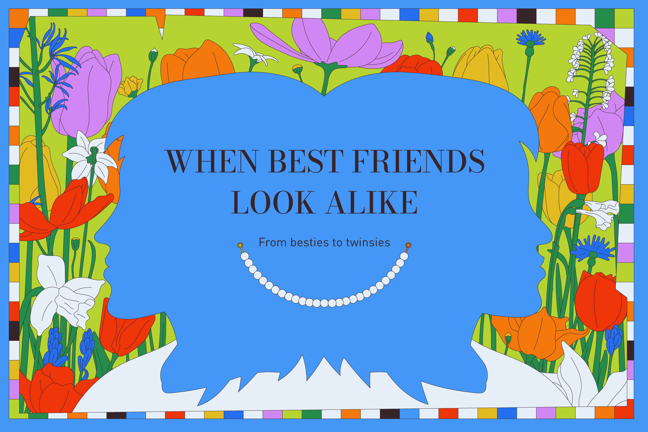 Illustration for a speculative article on how spending time together influences friendships, with two female characters immersed in a lush meadow-like background full of flowers.